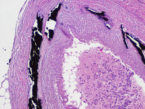 VonKossa’s礦化結(jié)節(jié)染色法原理是將礦化基質(zhì)中的磷酸鹽(鈣)、碳酸鹽(鈣)轉(zhuǎn)變?yōu)榱姿徙y、碳酸銀,然后用日光、紫外線或強還原劑使其還原為黑色的金屬銀。可用以觀察組織中鈣的分布和鈣含量多少的檢測。