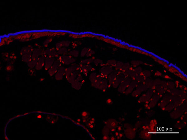 Fluorescent Brightener 28染色-蝗蟲皮層