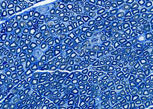多用于神經組織橫切半薄切片甲苯胺藍染色,目的在顯微鏡下觀察神經髓鞘的病變情況及髓鞘的厚度