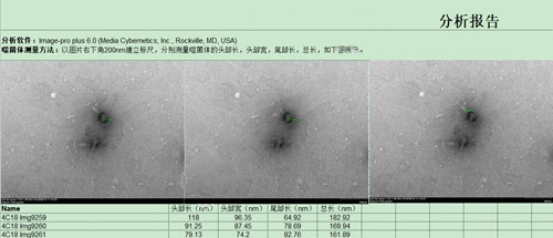 2.噬菌體大小(頭部長度、尾部長度)分析報告。
