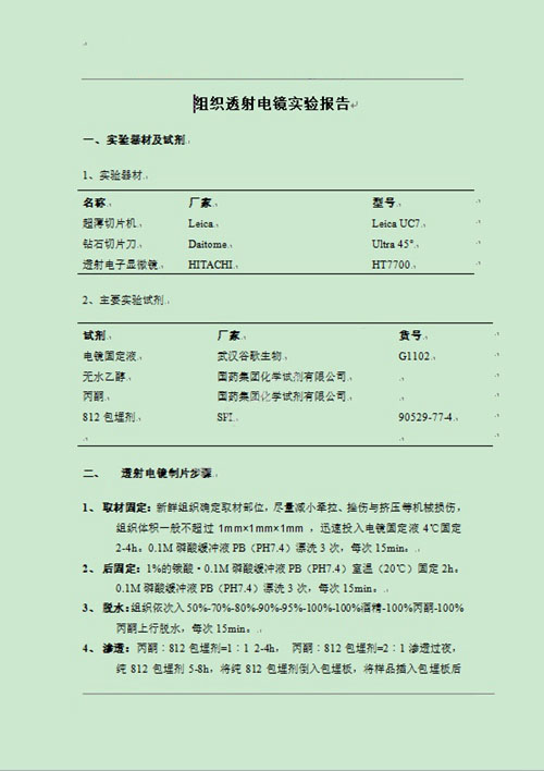 1.透射電鏡腎小管近端上皮細胞分析報告。