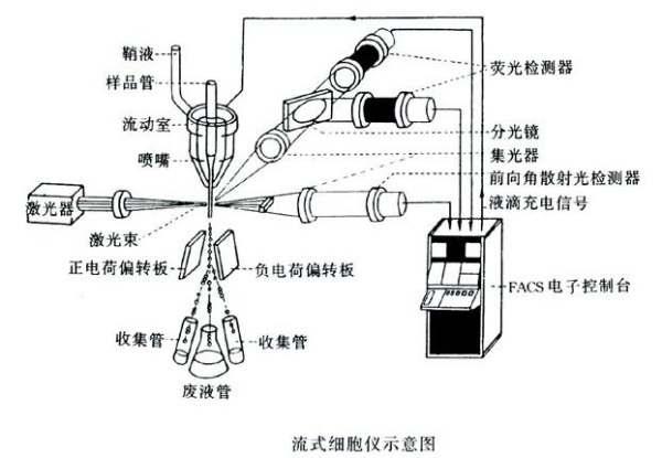 流式細胞術(shù)(Flow Cytometry,FCM)是一種在功能水平上對單細胞或其他生物粒子進行定量分析和分選的檢測手段,具有速度快、精度高、準確性好等優(yōu)點,成為當代最先進的細胞定量分析技術(shù)。流式細胞術(shù)能夠快速測定單個細胞或細胞器的生物學(xué)性質(zhì),并把特定的細胞或細胞器從群體中加以分類收集。流式細胞術(shù)可以高速分析上萬個細胞,并能同時從一個細胞中測得多個參數(shù),與傳統(tǒng)的熒光鏡檢查相比。